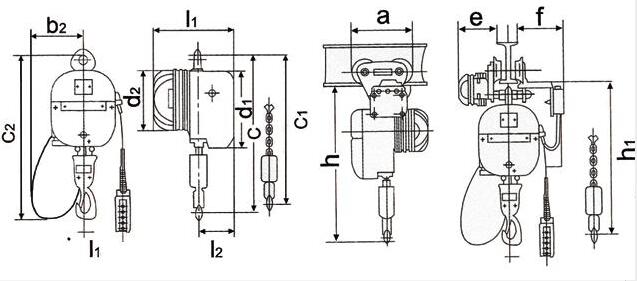 PK型環(huán)鏈電動葫蘆技術(shù)尺寸圖